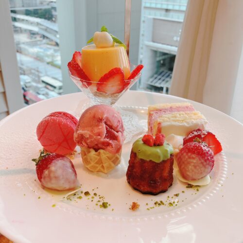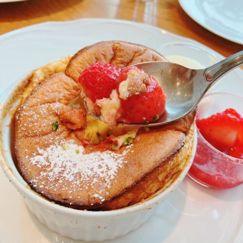 スフレ3種の中から1つチョイス、それとスイーツプレートが2皿。