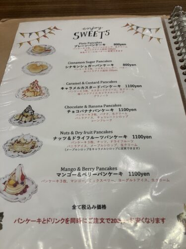 パンケーキとドリンクを同時に注文で200円お安くなります。