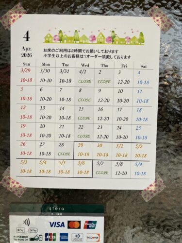 営業時間:月・火・木・金 10:00〜20:00(L.O. 19:00)