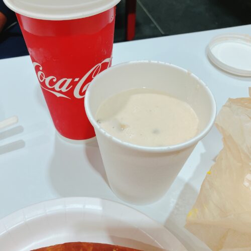 このスープ、マッシュルームの風味が濃厚でまるでクラムチャウダーみたい激うま!