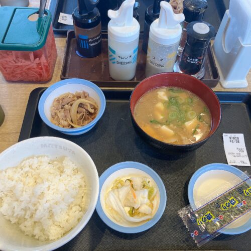 しばらく自転車を走らせて松屋で朝ごはんを。
