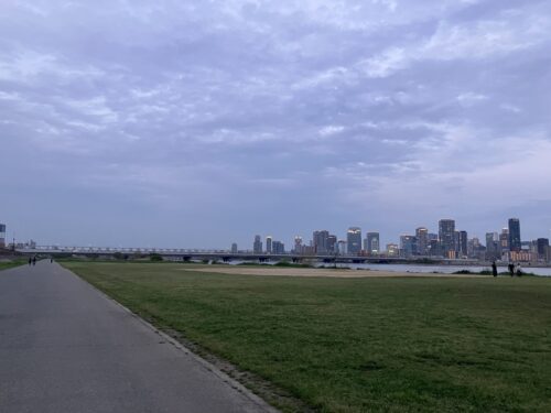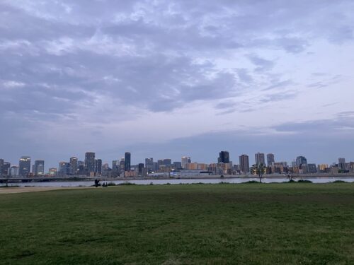 梅田あたりまで来た頃には、空がほんのり夜に変わっていく頃でした。