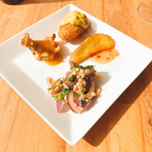 ドリンクはタイ産スパークリング SPY ホワイト(果実酒)を頂きました。これ、甘くて飲みやすいー!