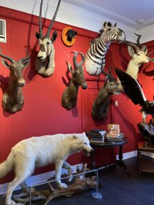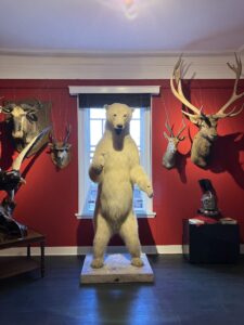 巨大なポーラーベアを始め、これでもか!とあちこちに野生動物の剥製が展示されていてちょっと怖いです。。