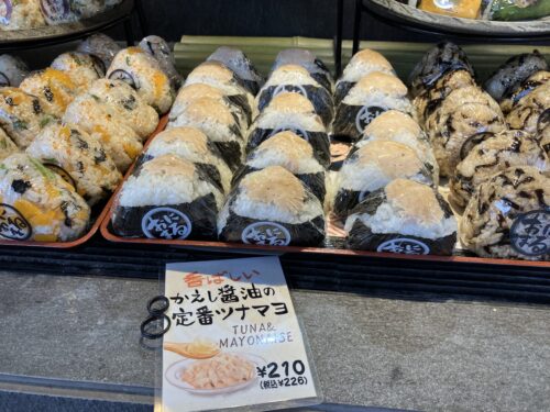 途中、山頂で食べるおにぎりを購入しよう〜。