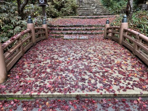 日向大神宮の境内では「紅葉じゅうたん」が。前日雨だったのでしっとりとした静けさが漂ってました。