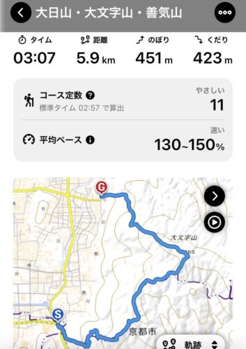 約3時間ほどの、大文字山トレッキング。