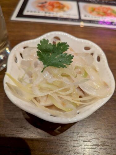 お通しは、イカと白ネギのあえもの。