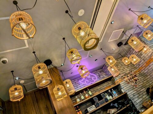 天井のランタンがアジアンチックで