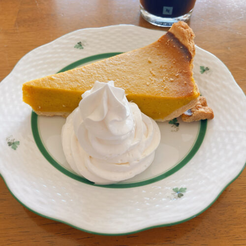 食後に、コストコのパンプキンパイ(冷凍してたので、朝一解凍しました。)も出したら