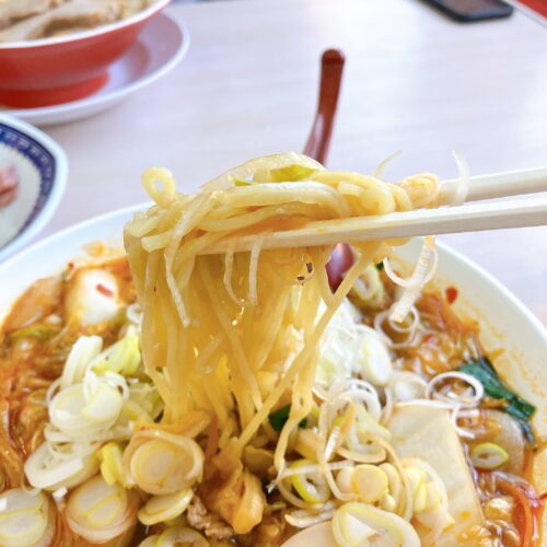ツルっとした細麺とシャキシャキのお野菜に、ピリ辛なスープが最高!