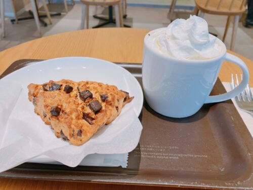 スコーンはスタバのチョコレートチャンクスコーンが好きで、