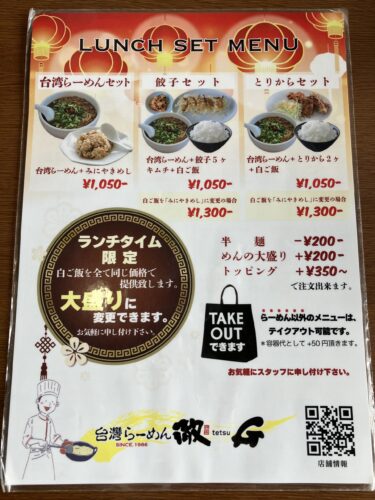 旦那さんは、台湾らーめんセット 1,050円(台湾らーめん+みにやきめし)