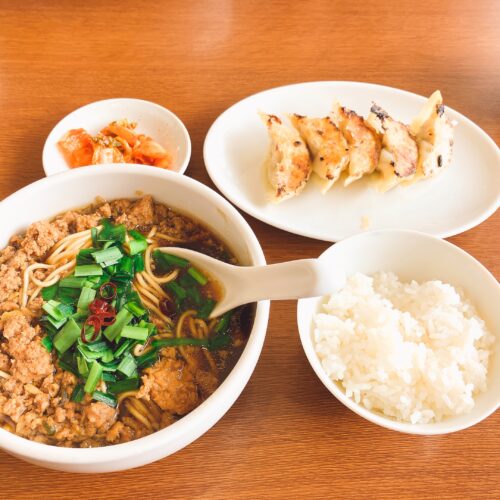 餃子セット 1,050円(台湾らーめん+餃子5こ+キムチ+ご飯)
