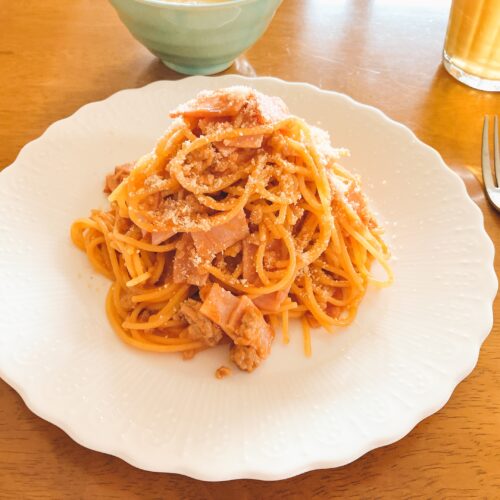 お昼は簡単にナポリタンでも。