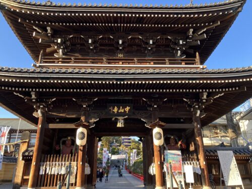寒すぎて高速で山を下り、やっと中山寺本堂に到着。