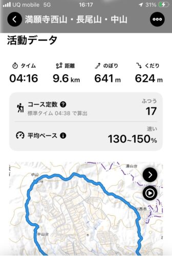 「山本駅-満願寺西山-中山-夫婦岩-中山観音駅 縦走コース」